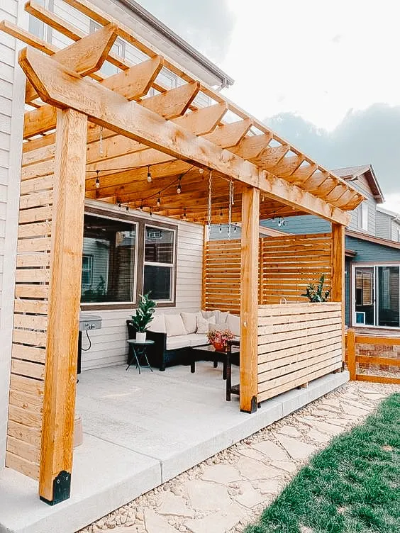 For wood pergolas, sand, paint, or stain the structure. Inspect annually for any signs of rot and treat with wood preservative if needed. Finally, decorate your pergola with drooping plants and fashionable cushions for a personalized touch.